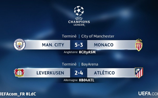 Leverkusen 2-4 Atletico Madrid; Manchester City 5-3 Monaco. La soirée a été riche en buts ce mardi soir en huitièmes de finale de la Ligue des champions. Vainqueurs 4-2 devant Leverkusen ce mardi soir, les Colchoneros de l'Atlético Madrid ont pris une sérieuse option pour la qualif en 1/4. Les Monégasques ont mené...