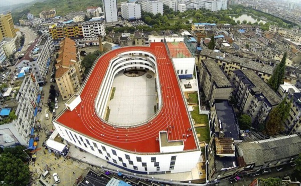 Faute de place au sol, une école chinoise inaugurée cette année a eu l'idée d'installer une piste d'athlétisme et un terrain de basket sur son toit. Même en Chine, pays immense de 9,6 millions de km2, on peut être confronté à des problèmes de place. Dans la ville de Tiantai, dans la province du Zhejiang, au sud de Shanghaï, la...