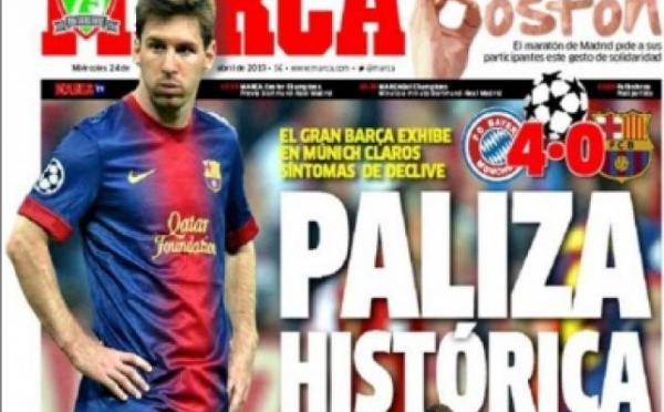 Alors que la presse allemande rivalise de superlatifs pour commenter la victoire écrasante (4-0) du Bayern face au Barça, côté espagnol, en revanche, c'est la soupe à la grimace Pour le quotidien sportif madrilène AS c'est «La fin d'un cycle» auFC Barcelone et carrément une «Raclée historique»,...