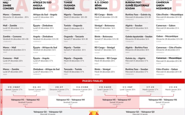 Le calendrier officiel des phases de groupes et des matchs à élimination directe est désormais connu. Pour les phases de groupes, les sélections s'affronteront pour décrocher l'un des précieux billets pour la suite du tournoi. Le coup d'envoi des matchs à élimination directe sera donné le 5 janvier 2026. La Finale de la...