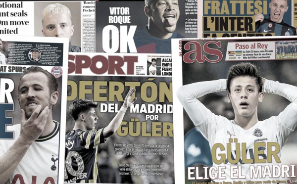Le Real Madrid a complètement retourné la situation sur le dossier Güler, le Bayern pense toujours que Kane va venir cet été, et l’Inter boucle déjà une deuxième recrue, retrouvez dans votre revue de presse Foot Mercato les dernières informations de la presse sportive européenne. « Le Real prend Güler au Barça »...