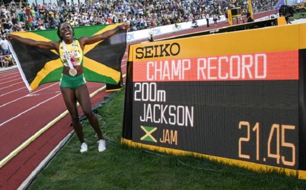L'un à douze centièmes du record du monde, l'autre à onze: l'Américain Noah Lyles et la Jamaïcaine Shericka Jackson ont affolé le chrono pour fuser vers l'or mondial du 200 m à Eugene (Oregon). "J'espérais vraiment que ça soit un chrono rapide, mais quand je l'ai vu, je me suis dit: sérieusement?", s'est étonné le désormais...