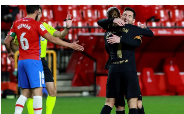 Le Barça a battu le Grenade sur un score lourd de 4 buts à 0, grâce aux doublés de Antoine Griezman et de Leonel Messi. Match comptant pour la 18ème journée de Liga ce samedi 9 janvier 2021. Avec cette victoire, les Blaugrana confortent leur bonne forme en cette début d’année 2021. Trois (3) matchs, trois (3) victoires....