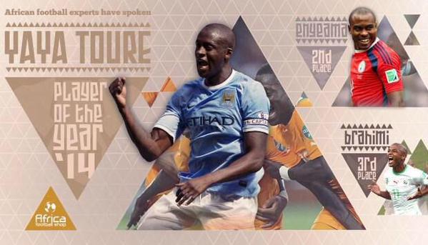Le milieu de terrain Manchester City a récolté 95 points. Il est suivi du portier nigérian de Lille Vincent Enyeama avec ses 81 pts. Yacine Brahimi ferme la marche du podium avec 56 points.