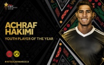 L'international marocain Achraf Hakimia été sacré meilleur jeune joueur africain de l'année 2018 au CAF AWARDS, ce mardi à Dakar. Agé de 20 ans et né en Espagne, Achraf évolue actuellement au Borussia Dortmund. Il était en compétition avec le Nigérian Wilfried Ndidi et l'Ivoirien Frank Kessie...